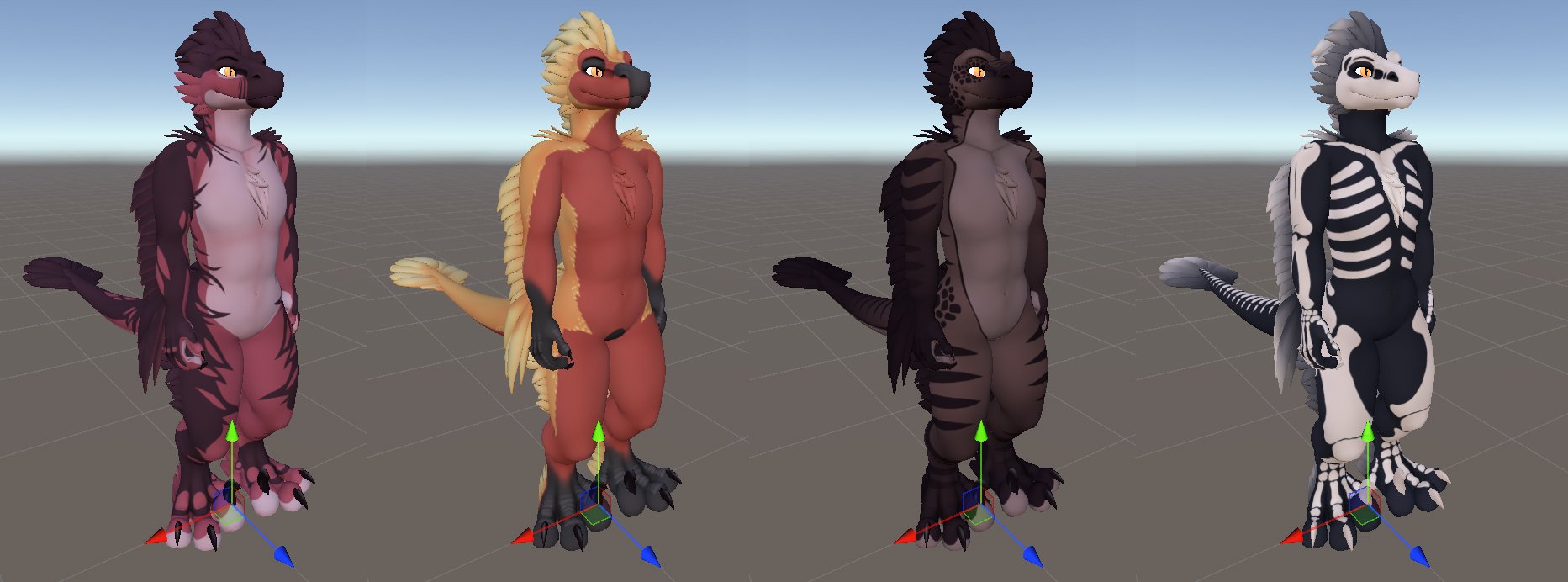 - There's 4 base texture set ups to choose from! The original red raptor, a more feathery style, striped dino, and bones